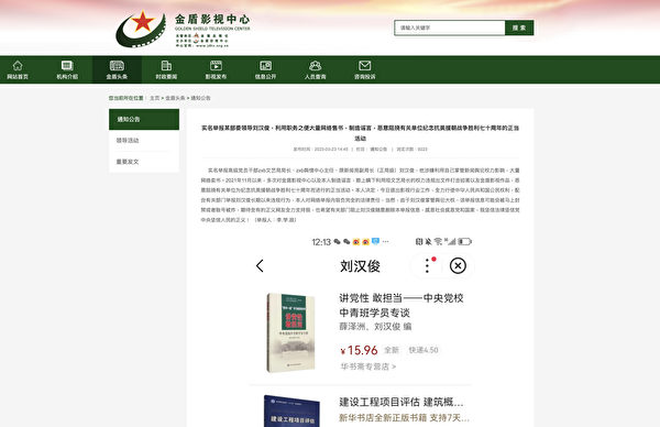 3月23日,原隶属中共军委后勤保障部的金盾影视中心官方网站发布公告,该中心主任李学政实名举报中宣部文艺局局长、中宣部舆情中心主任、原新闻局副局长(正局级)刘汉俊,2021年以来以权谋私,制造谣言并对金盾影视中心打击迫害。