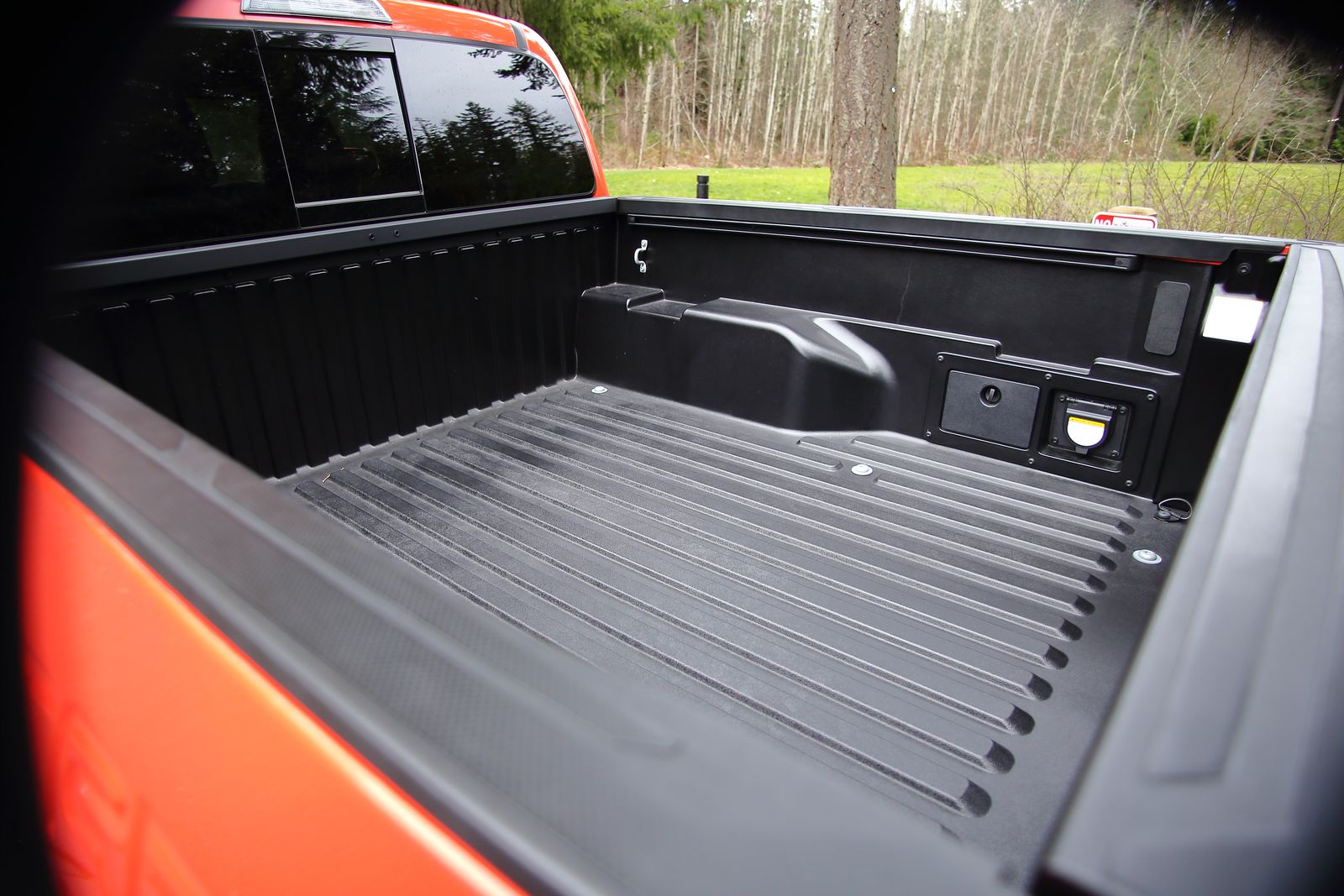 车尾闸门也大有学问,别以为只是压上了大大的“Tacoma”字样而已,其实顶部微微伸延的部分,功能就是一个小型扰流器,为Tacoma降低风阻。此外,在放下尾闸时又不会像其它卡车般发出巨响,因为Tacoma的尾闸装上了“减速器”,Toyota称其为“Easy Lowering Feature”,在开启时可缓慢下降,不会一下就“跌”下来。