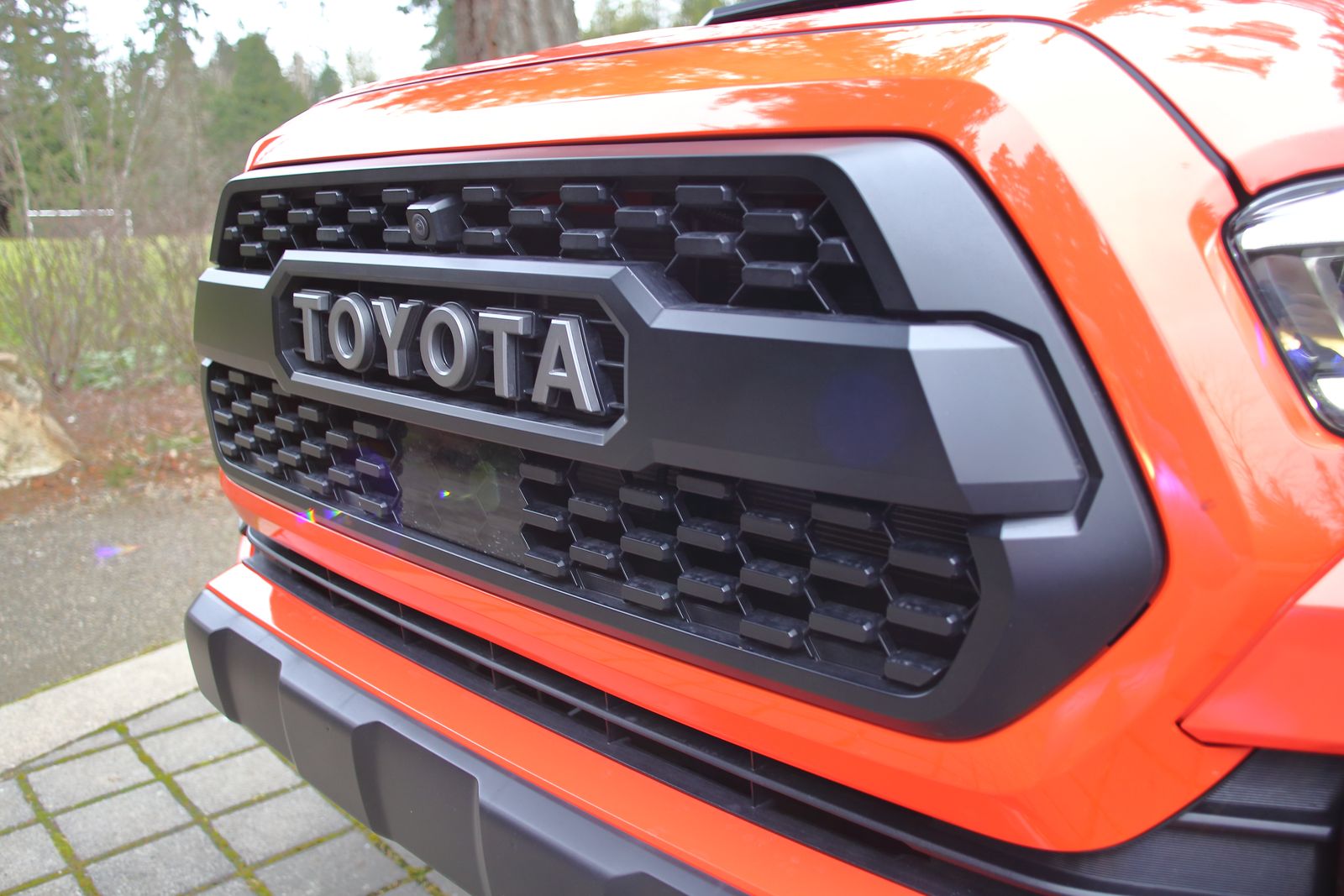 Toyota在2020年为Tacoma进行了中期改款(Facelift),主要是在外型的设计改变,尤其是前脸的设计,头灯及进风口栏栅网纹显着不同,测试的顶级版TRD Pro尤其不一样,在进风口栏栅上采用“TOYOTA”代替了其他型号的厂徽,在LED头灯组也有“Pro”的透光板,在头灯启动时也会发光一样。另外,在引擎下方也装有TRD的保护板,不单可保护引擎底部,也令4Runner看起来更粗犷。车侧线条与改款前一样,近下方的凹槽也保留下来,TRD Pro版在货卡两边侧面也有“TRD Pro”的凹字。Tacoma地台离地距较高,足有9.4英寸,并且没有装上踏脚板,所以上下车时也有点不便。
