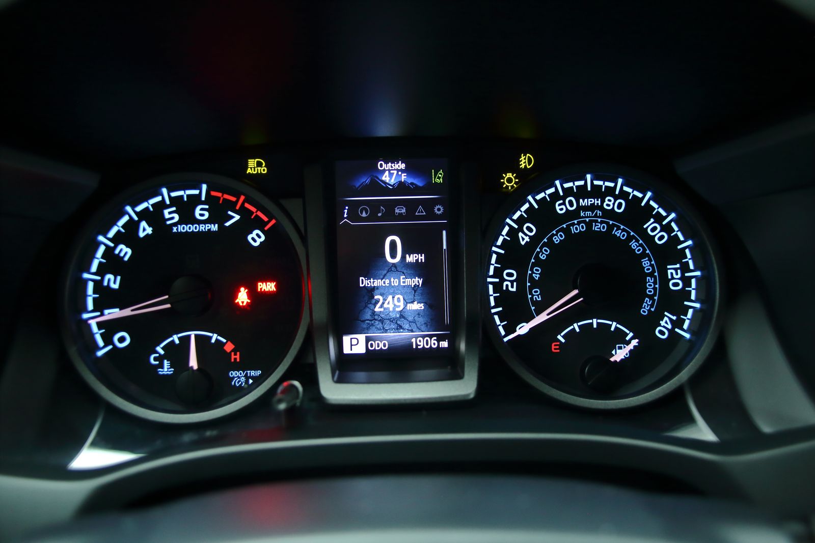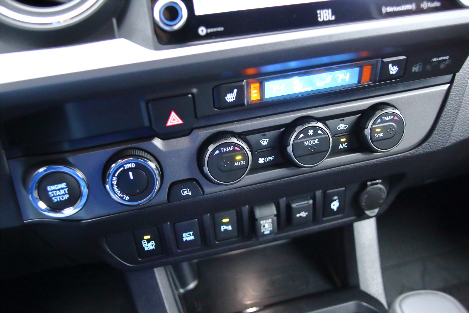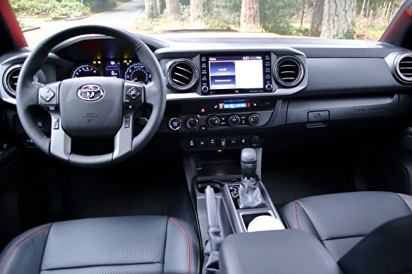 测试的Tacoma是4×4四驱版本,可使用两轮驱动(2WD)、四轮驱动 (4H)及四轮驱动(4L)。2WD适合一般路面使用,也较省油;4H为高速四驱,也用在一般路面上,下雨或下雪等有更佳操控;4L为低速四驱,在越野时慢驶时之用。Tacoma的四驱/两驱转换,以电子式控制,只需旋动旋扭,待仪表板的灯号停止闪动,便已完成。在路上使用4H时,行驶时会感觉多一点阻力,而且转弯时阻力更大,所以笔者在一般行驶时都是使用2WD。
