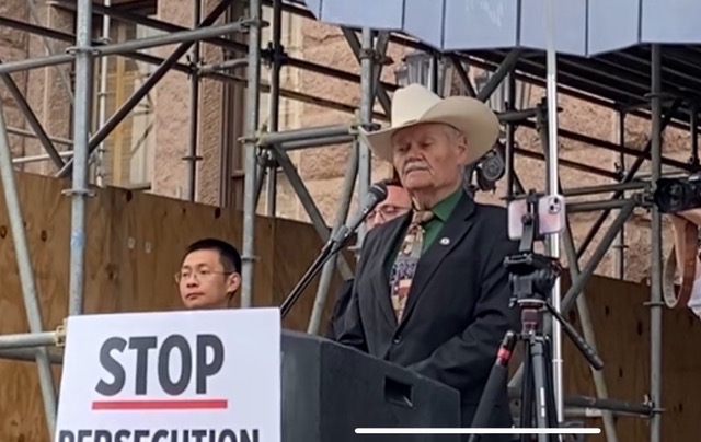 他感谢德州参众两院的议员们前来声援,他说:“感谢你们参加我们纪念这一天的集会。你们的慰问给了遭受苦难的法轮功学员莫大的安慰……你们的支持是正义的,对还在极度艰难中的同修来说是莫大的鼓励。你们对法轮功修炼者的支持将与1999年4月25日这一天一起被铭记,谱写人类历史的光辉篇章。”