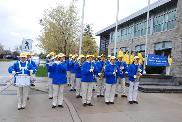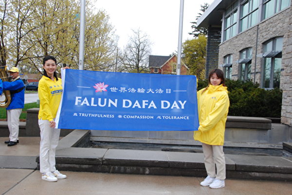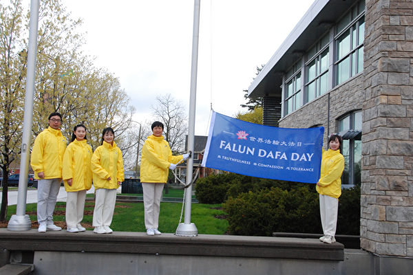 【大纪元2023年05月02日讯】(大纪元记者伊铃多伦多报导)彩旗飘舞,乐声高扬,随着戈登‧克兰茨(Gord Krantz)市长的口令:“一、二、三、四、五,升‘法轮大法日’旗!”一面蓝底白字的“法轮大法日”旗帜徐徐升起,高高飘扬在加拿大安省米尔顿(Milton)市政广场。
