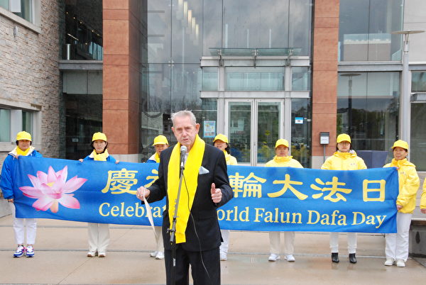 克兰茨市长赞扬法轮功为米尔顿市带来光明。 他说,“尽管今天米尔顿镇的天气有点凉,但这是非常明亮的一天。”