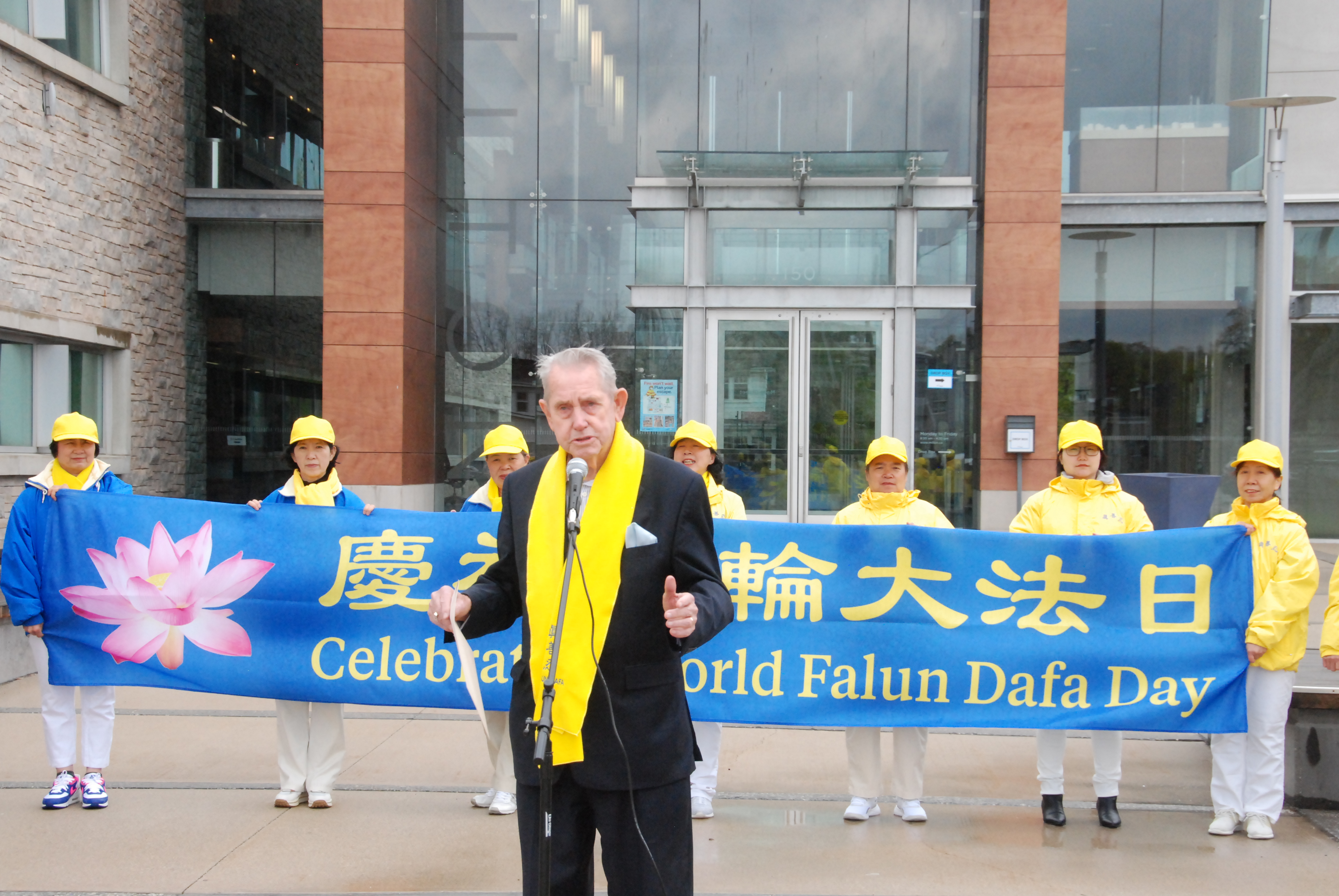 “看到现场(法轮功学员)身穿亮黄的衣服,使我不免想到‘光明’。”他说,“当我谈到光明的时候,亮黄的颜色,预示着更美好的事情即将到来。而你们所要做的是否意味更好的事情即将到来?看看周围,春天已经在这里,春天来了……