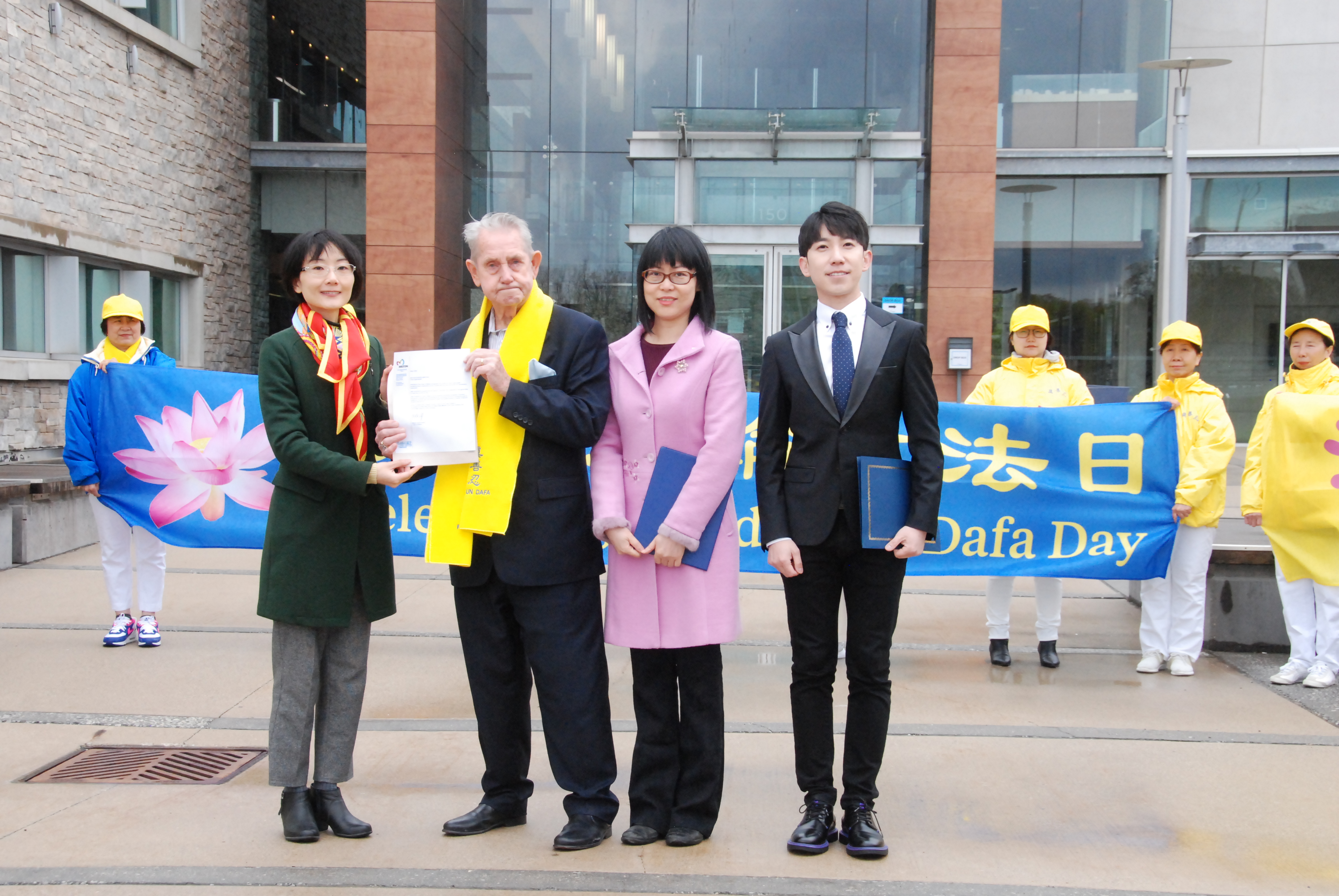 “借此,我们感谢加拿大人民和各级政府的支持和褒奖,愿法轮大法为加拿大和全世界带来美好的未来! 愿‘真、善、忍’照亮我们每一个人的心灵和世界上的每一个角落,为人类带来一个光明的未来。”她说。