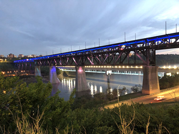 当晚,亚省省会城市埃德蒙顿也会在当地地标大桥亮灯,来庆祝法轮大法日。