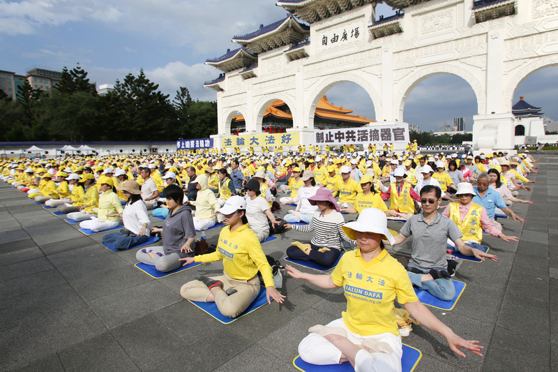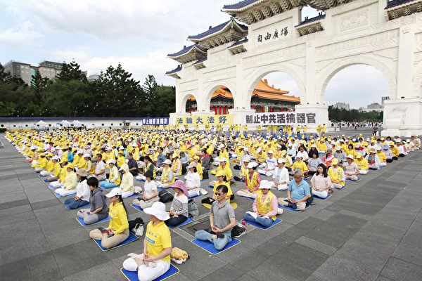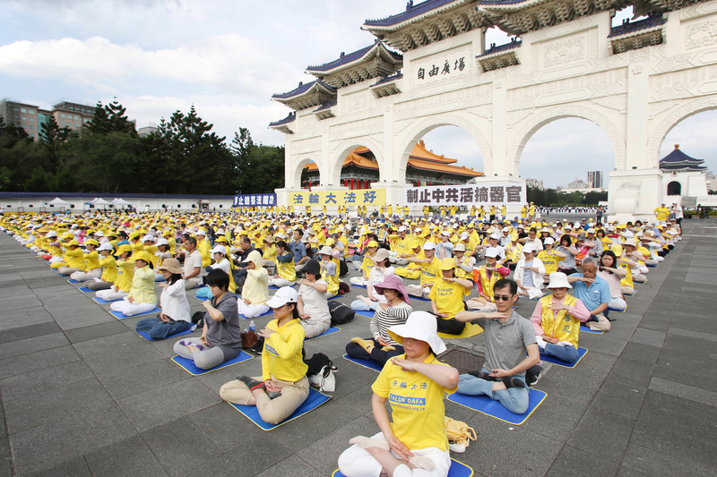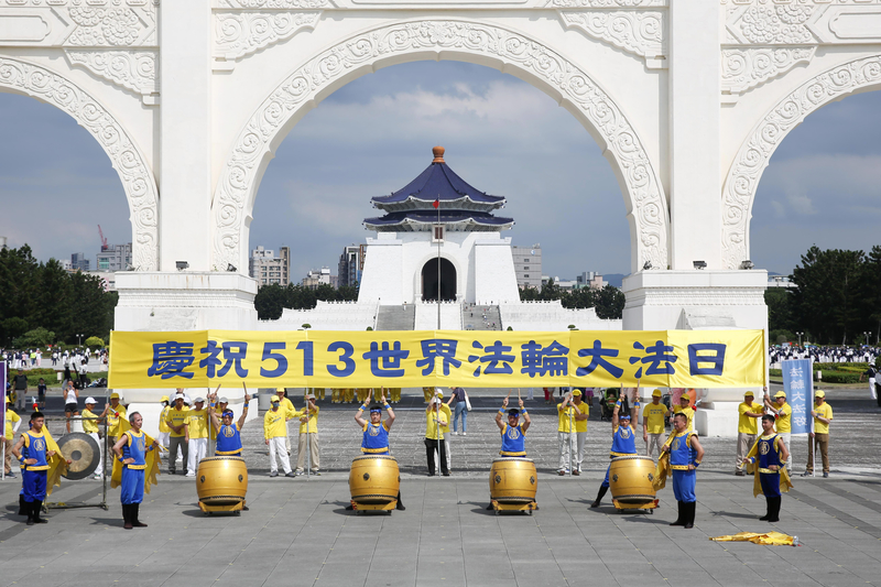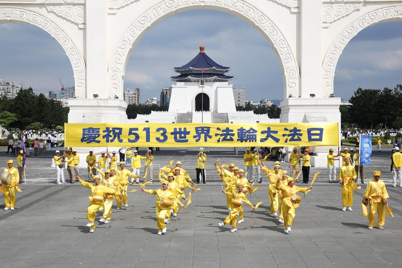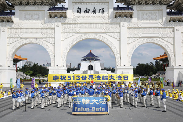 【大纪元2023年05月06日讯】(大纪元记者钟元台湾采访报导)台湾大台北地区部分法轮功学员近千人,5月6日下午齐聚中正纪念堂自由广场,提前庆祝5月13日“世界法轮大法日”。主办方安排天国乐团、新唐人旗鼓队、腰鼓队表演及法轮功五套功法演示,有游客驻足观看活动并拿手机拍照。