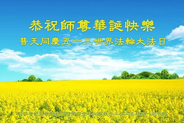 他们写道:“恭祝慈悲伟大的师尊生日快乐!恭贺世界法轮大法日!