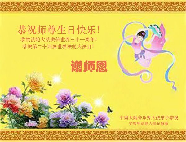 中国大陆音乐界大法弟子恭祝师尊生日快乐!