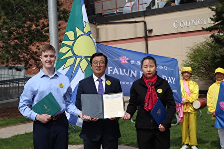 【大纪元2023年05月12日讯】(大纪元记者伊铃多伦多报导)今年是法轮大法洪传31周年,5月8日至11日,加拿大安省又有4个城镇褒奖法轮大法,举行“世界法轮大法日”升旗及城市标志建筑亮灯仪式,以庆祝“世界法轮大法日”。