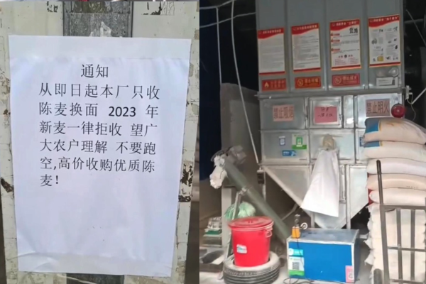 6月6日,“面粉厂不收今年新小麦?当地回应”话题登上大陆百度热搜榜。上月底,有网民发出一段视频显示,河南一家面粉厂张贴通知称,本厂只收陈麦换面,2023年新麦一律拒收,高价收购优质陈麦!