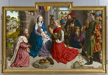 耶稣并没有没有向三博士致意,他的目光朝向观众,将观画者带入场景之中。凡‧德‧古斯非常高超地使用了光影效果,以鲜明、微妙变化的色彩描绘三位博士华丽的衣服和配件。在博物馆的出版物《Gemäldegalerie: 200 Masterpieces of European Painting》中评论凡‧德‧古斯笔下的人物,“这些人物的庄严宁静与超凡不朽远远超越了荷兰当时最高的艺术成就”。