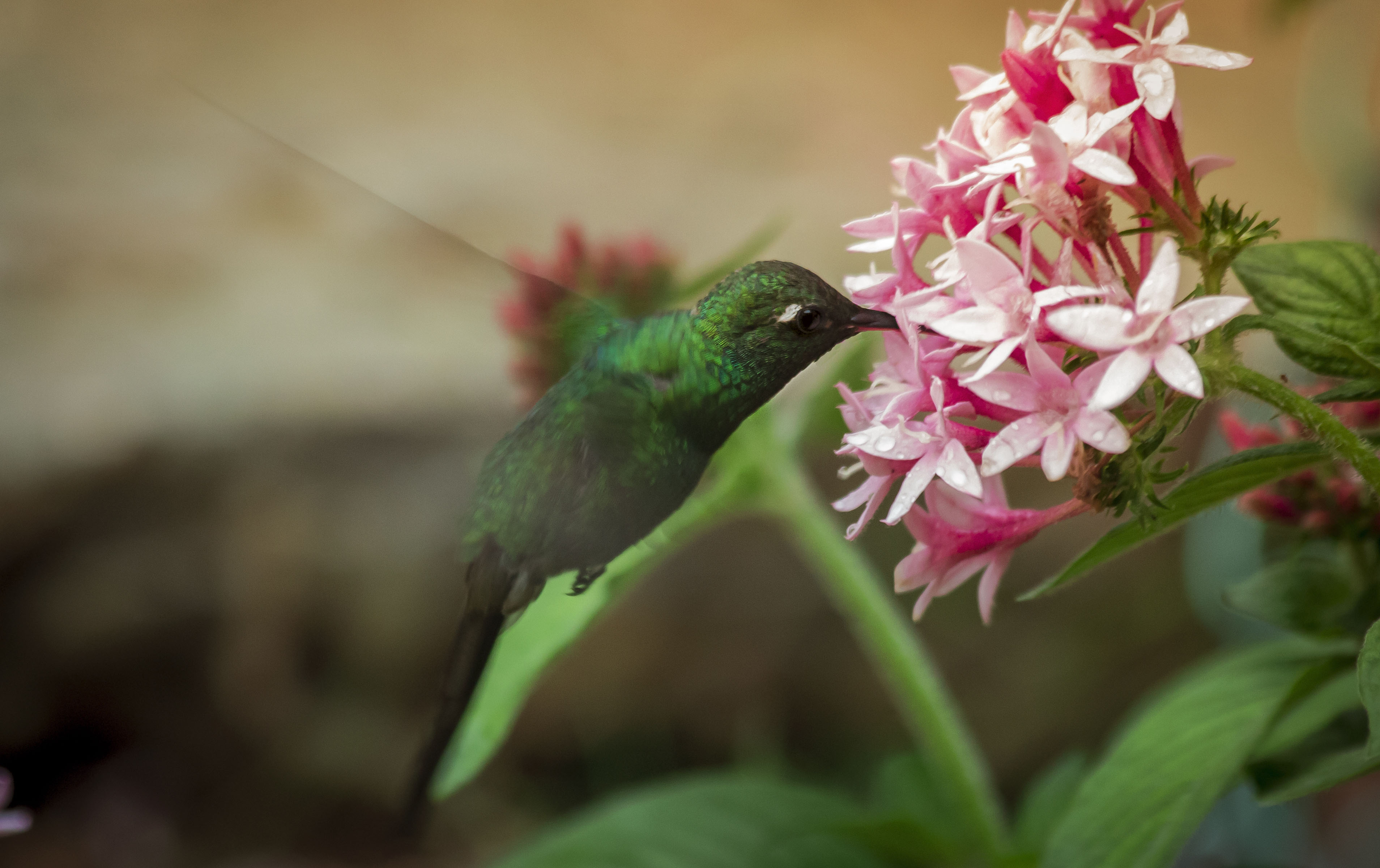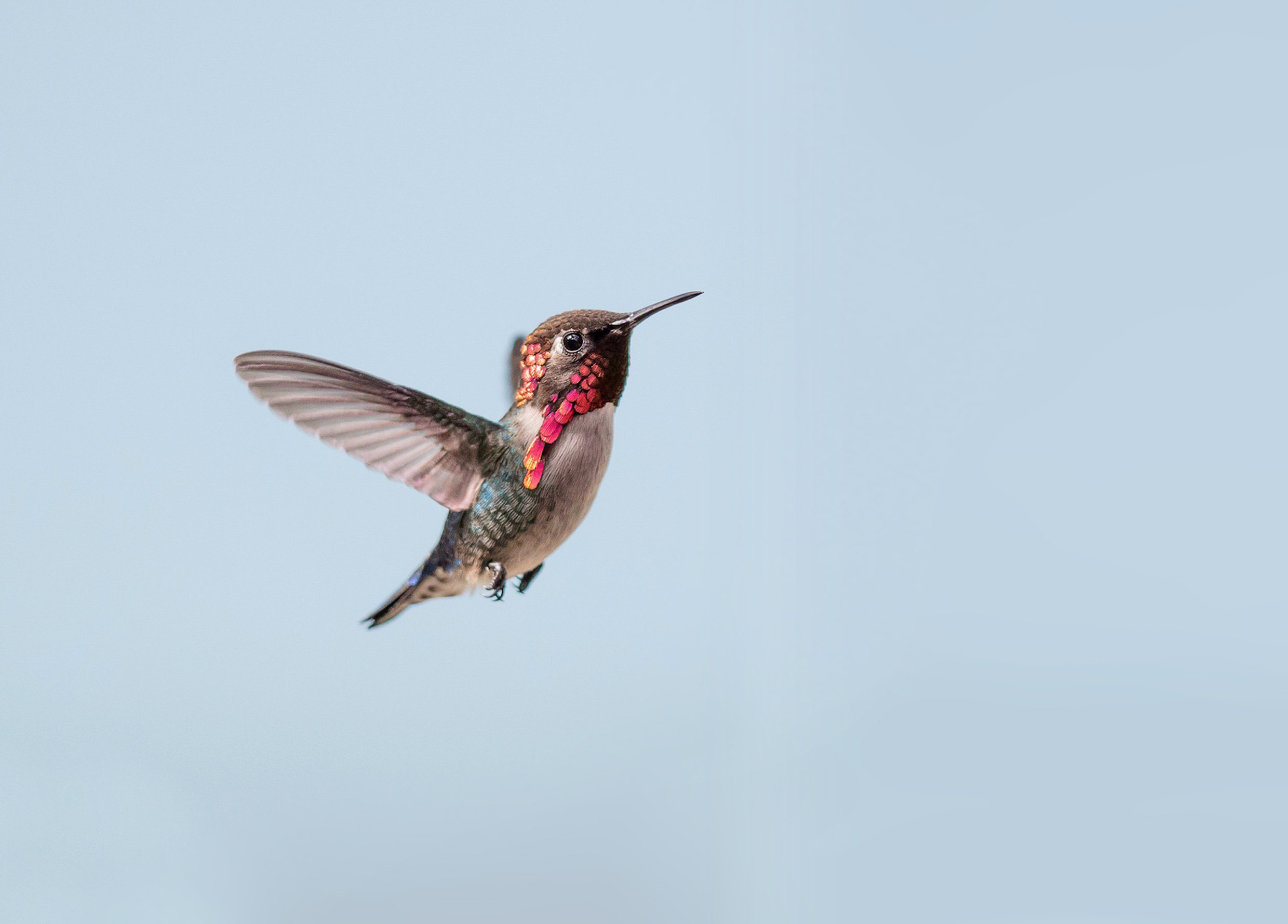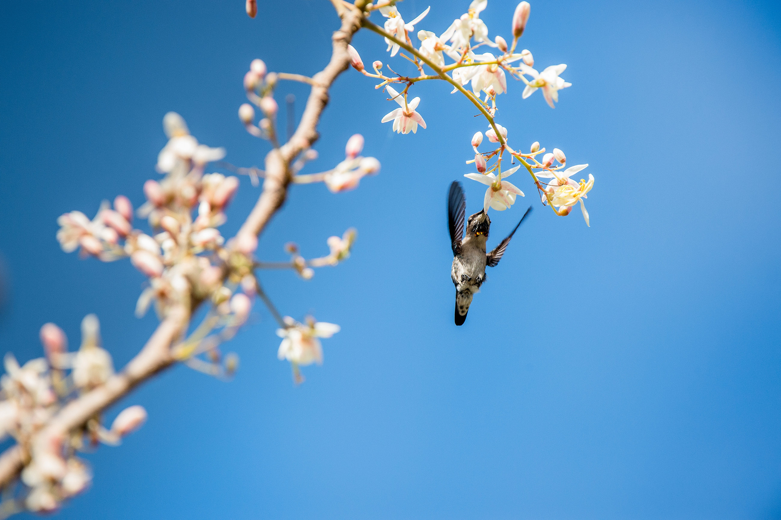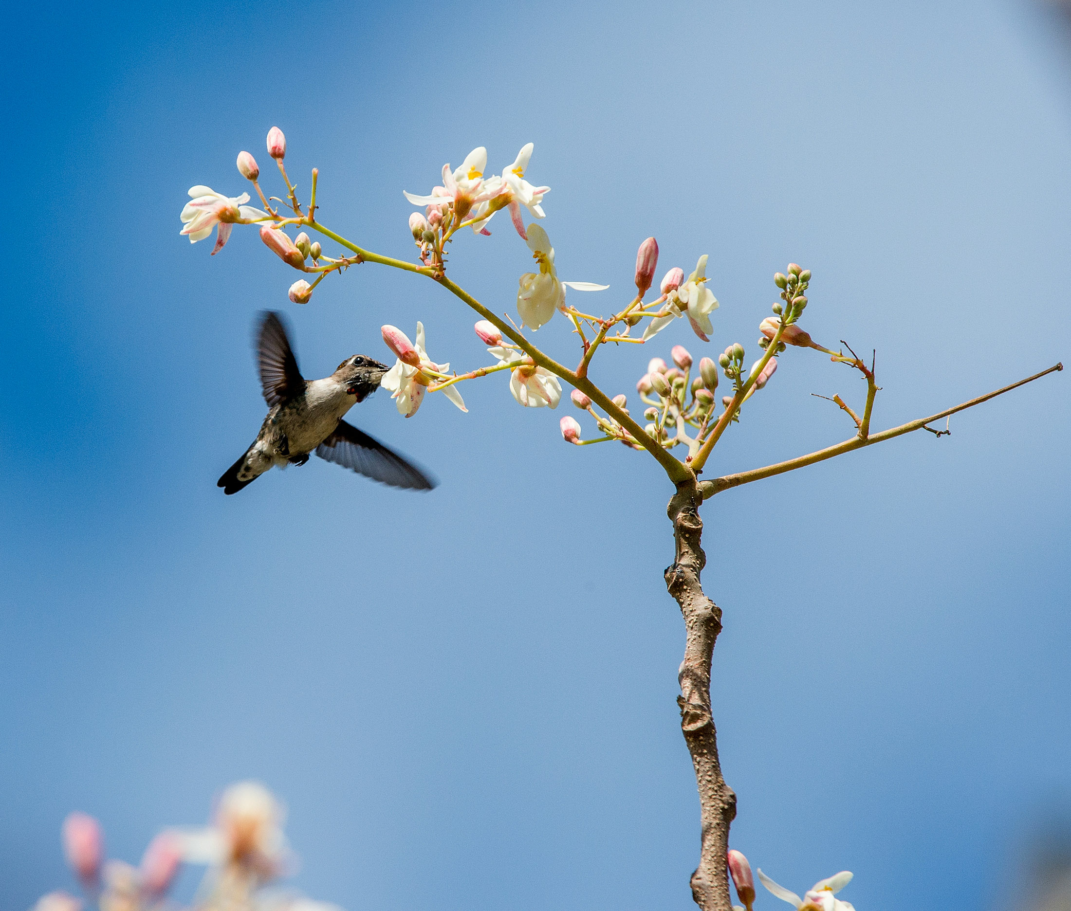 事实上,这种贪吃的小家伙每天要吃进相当于自己体重一半重量的食物,并需拜访1,500朵花吸食足够的花蜜来解渴。富含糖分的花蜜为它提供了必要能量,而捕食的昆虫则是蛋白质的好来源。吸蜜蜂鸟可以长达20小时不休息连续飞行,当然这需要消耗大量卡路里。