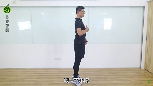 必须先收小腹,并稳定住脊柱与骨盆。收小腹的动作并不仅仅是收缩肚皮而已,而是要利用腹直肌(连接胸骨与耻骨的肌肉),把耻骨(骨盆前端)往上移大约1~2公分,让它更靠近胸骨。这样,整个脊柱的排列会呈现最稳定的状态。此时,再以髋关节为支点做后倾的动作,才能避免折到腰。