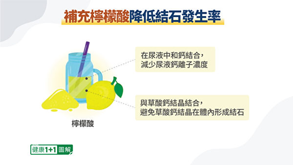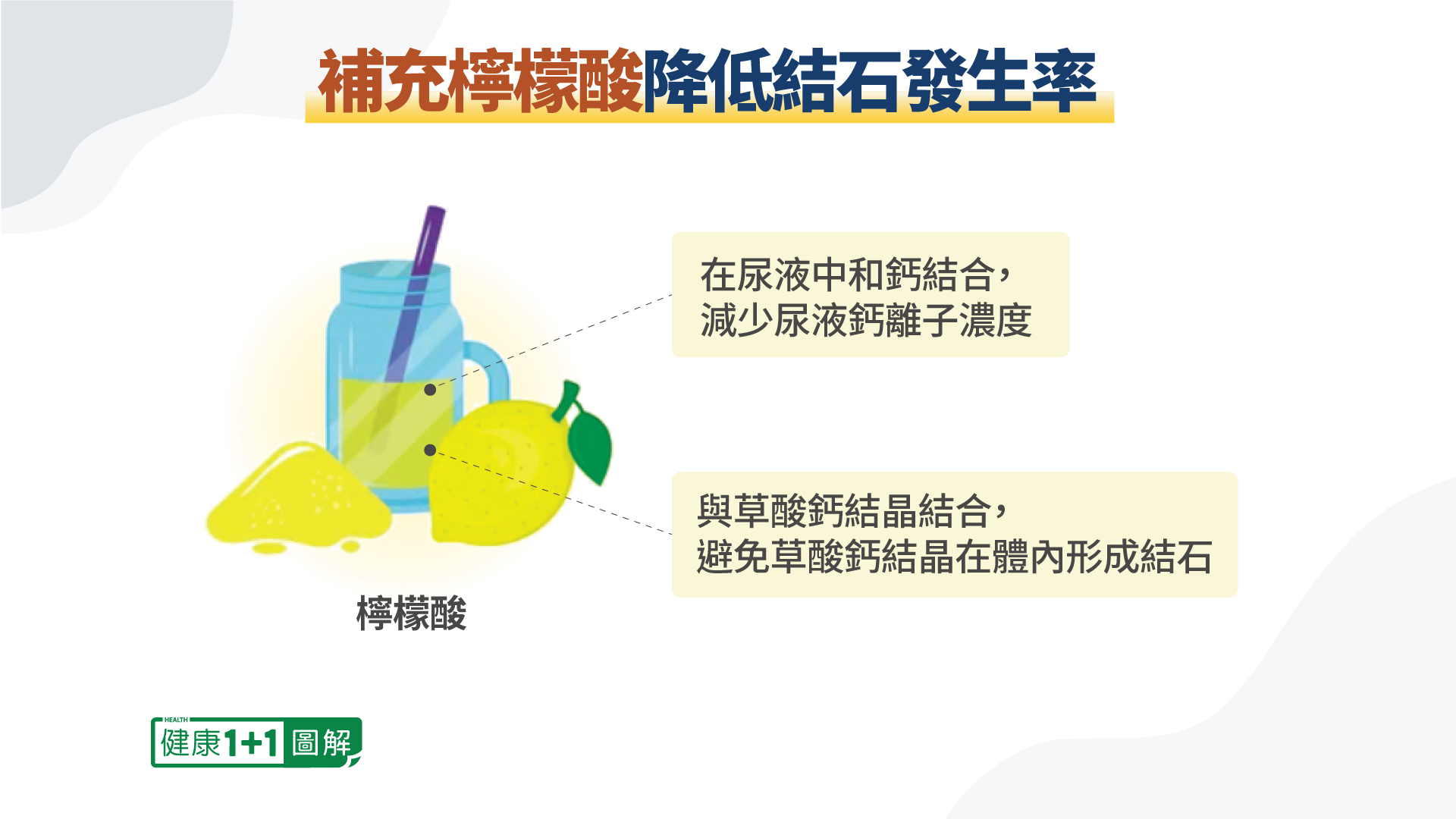其次,一些含柠檬酸的水果可以降低肾结石风险。柠檬酸在尿液中跟钙结合,可以减少尿液中钙离子的浓度,会减少肾结石的风险。柠檬、柳橙、葡萄柚、苹果含有柠檬酸比较多,可以多吃。