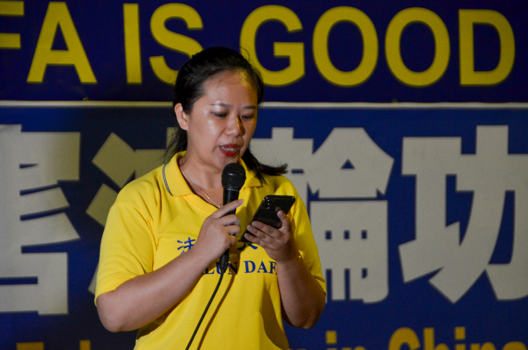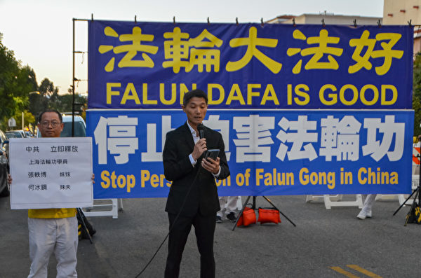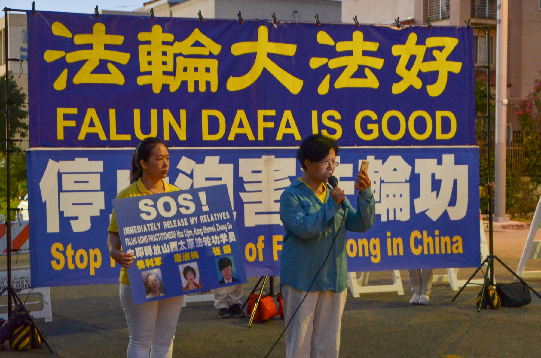 周二(18日)晚,大洛杉矶地区部分法轮功学员约二百人,在中领馆前举行“720烛光夜悼”集会,多位学员在集会上发言,呼吁国际社会紧急营救其亲人。