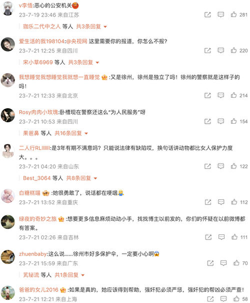 【大纪元2023年07月22日讯】(大纪元记者李净报导)江苏省徐州市一女孩近日发布一段视频,讲述了她在遭人强奸后险被杀害,并遭到当地警方殴打并以莫须有罪名将其拘留的遭遇。此事件受到网民关注。