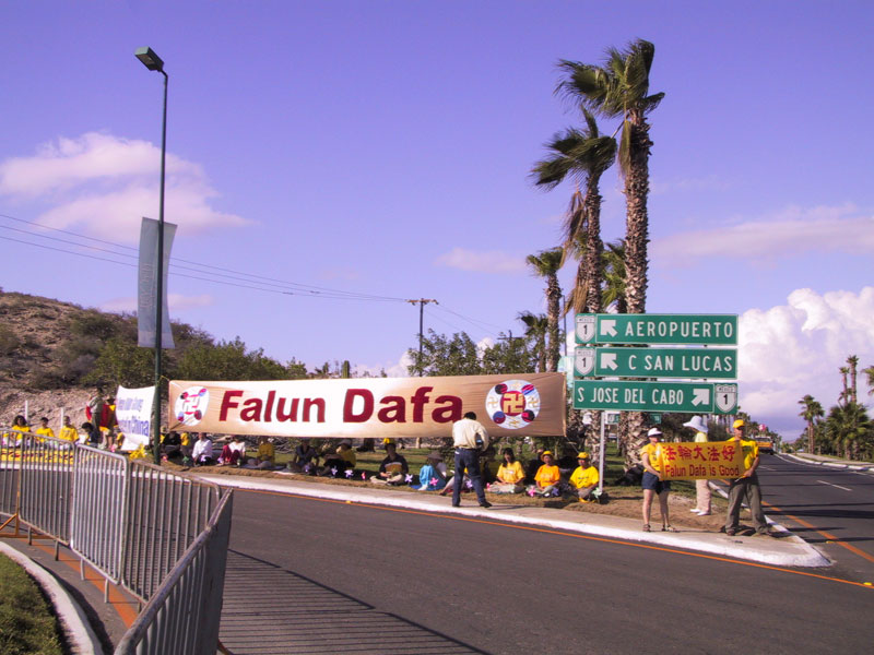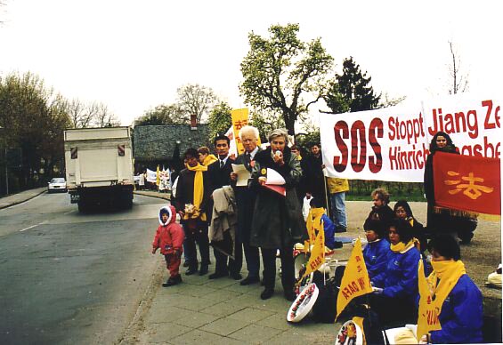 2002年4月,江泽民访问德国时,害怕看到穿着印有“法轮大法”字样的黄色衣服、和平抗议的法轮功学员,以及害怕听到“法轮大法好”的呼声。为此,中共向德方施压并造谣、抹黑法轮功,使得德国警方根据虚假信息,阻扰抗议江泽民的法轮功学员。