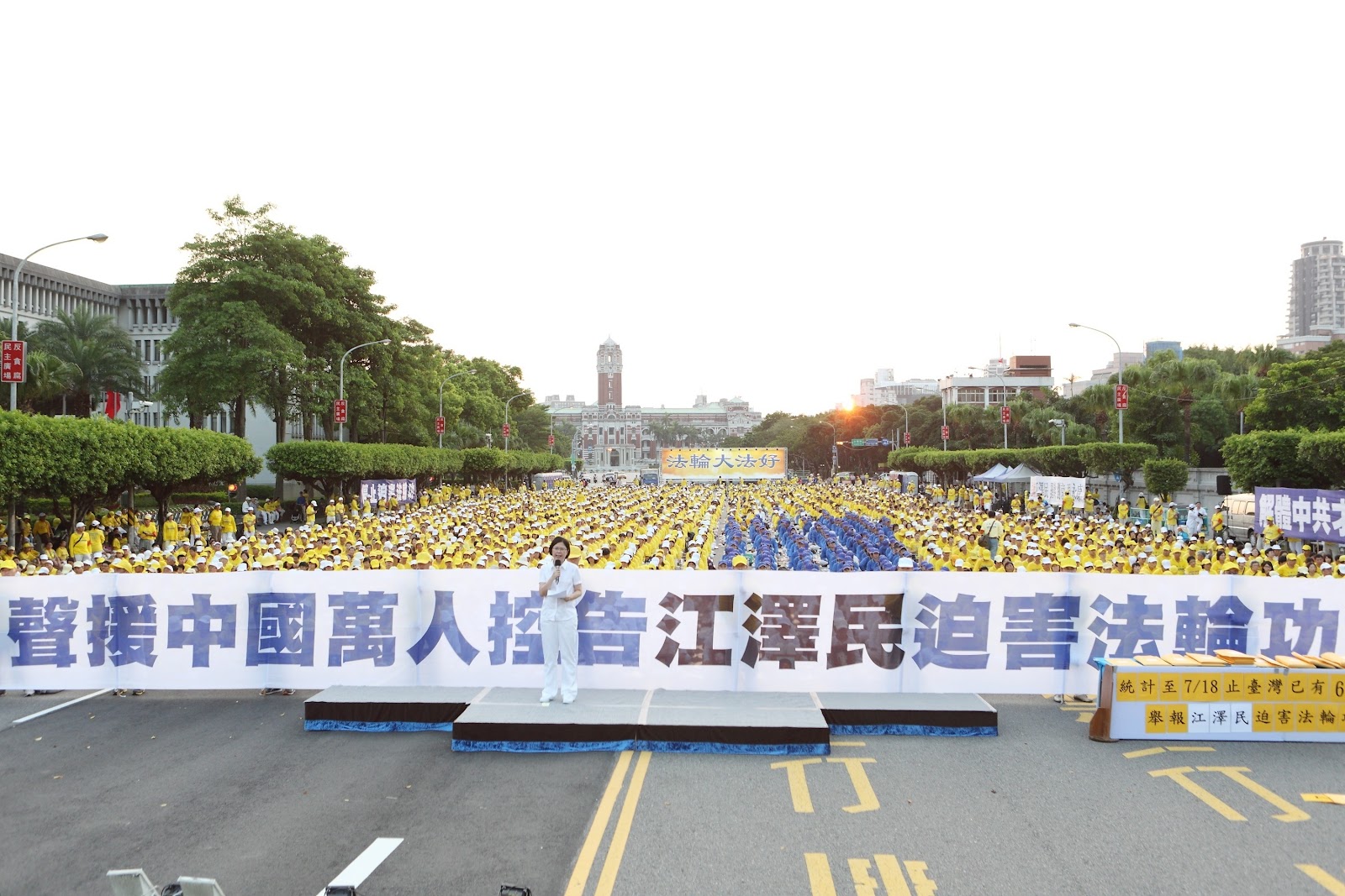 2002年4月,中共党魁江泽民出访德国时,所到之处害怕见到穿黄衣服,戴黄围巾的法轮功学员抗议,以至于德国政府根据中共提供的虚假信息发出总统令:不能让江泽民看见黄色。