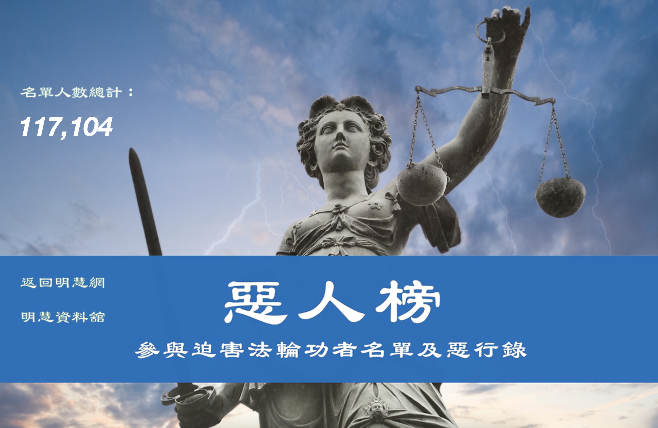 明慧网至今已搜集、整理了11万7,104恶人参与迫害法轮功的案例,涉及中共各级人员,从宣传、文化教育、演艺、媒体、军队、公检法、宗教系统、企事业单位等。这些恶人中有指挥者、协同者以及实施迫害者,详情见恶人榜。