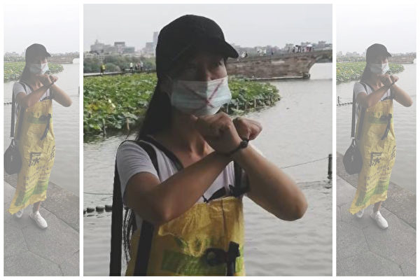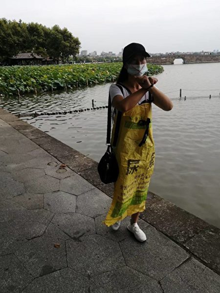 9月20日,杭州严女士来到西湖边双手握拳交叉胸前,表达无声的抗议。她因公司被强拆,18年未获解决而维权上访,却因维权被关看守所19个月。