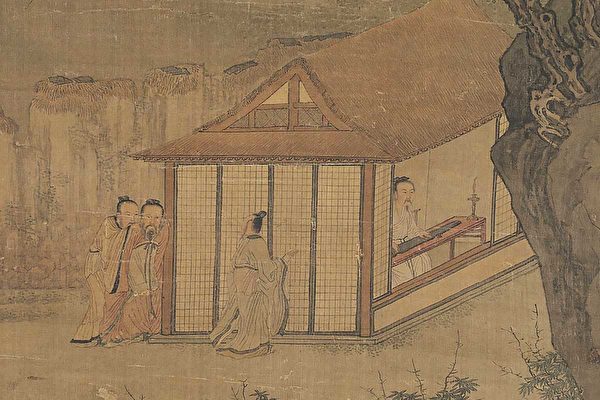 古琴也是陋室里对话山水、怡心怡情的良伴。“别墅萧条海上村,偶期兰菊与琴尊。檐横碧嶂秋光近, 树带闲潮晚色昏。”(吴融《秋日经别墅》)水畔别墅萧条简陋,却有幽草与闲花妆点色彩,也有琴声与酒樽增添雅趣。黄昏时分,屋檐下的青翠峰峦绵延如屏,树影间的滔滔潮水奔流不尽,而诗人坐看山水,独自抚琴、饮酒,在这世外桃源中过着优雅闲适的生活。