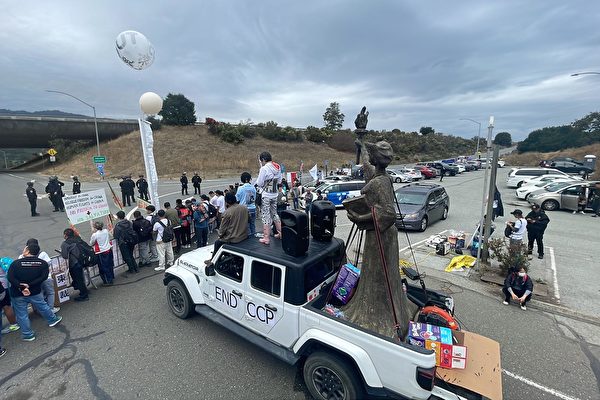 当地时间11月15日,美国总统拜登和中共党魁习近平在旧金山以南的斐洛里庄园进行长达四小时的会晤。会场外,数百名抗议中共的人士在庄园附近的公路边聚集,与粉红队伍形成对峙。费罗丽庄园附近的几个高速路口,一度被警察封锁。