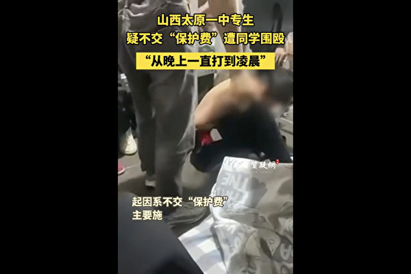 【大纪元2023年11月23日讯】(大纪元记者李净综合报导)近年来,中国校园暴力事件层出不穷。山西省畜牧兽医学校的一名学生近日在宿舍内多次遭“校霸”暴打,起因系不交“保护费”,该事件引发网络关注。