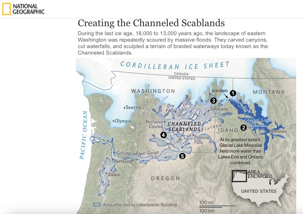761. Formed by Megafloods, This Place Fooled Scientists for Decades. Geologists couldn’t account for the strange landforms of eastern Washington State. Then a high school teacher dared to question the scientific dogma of his day. BYGLENN HODGES PHOTOGRAPHS BYMICHAEL MELFORD https://www.nationalgeographic.com/adventure/article/channeled-scablands