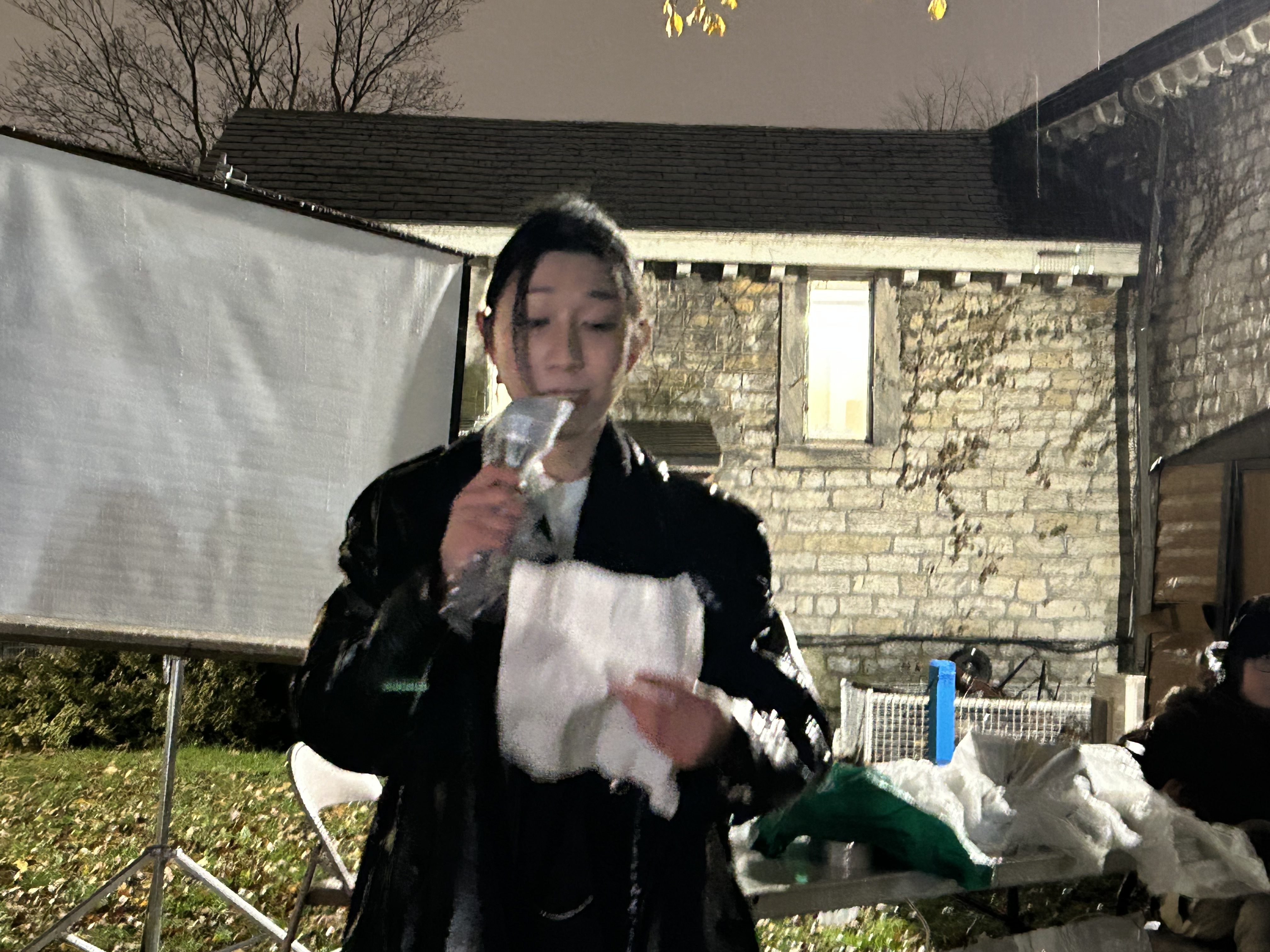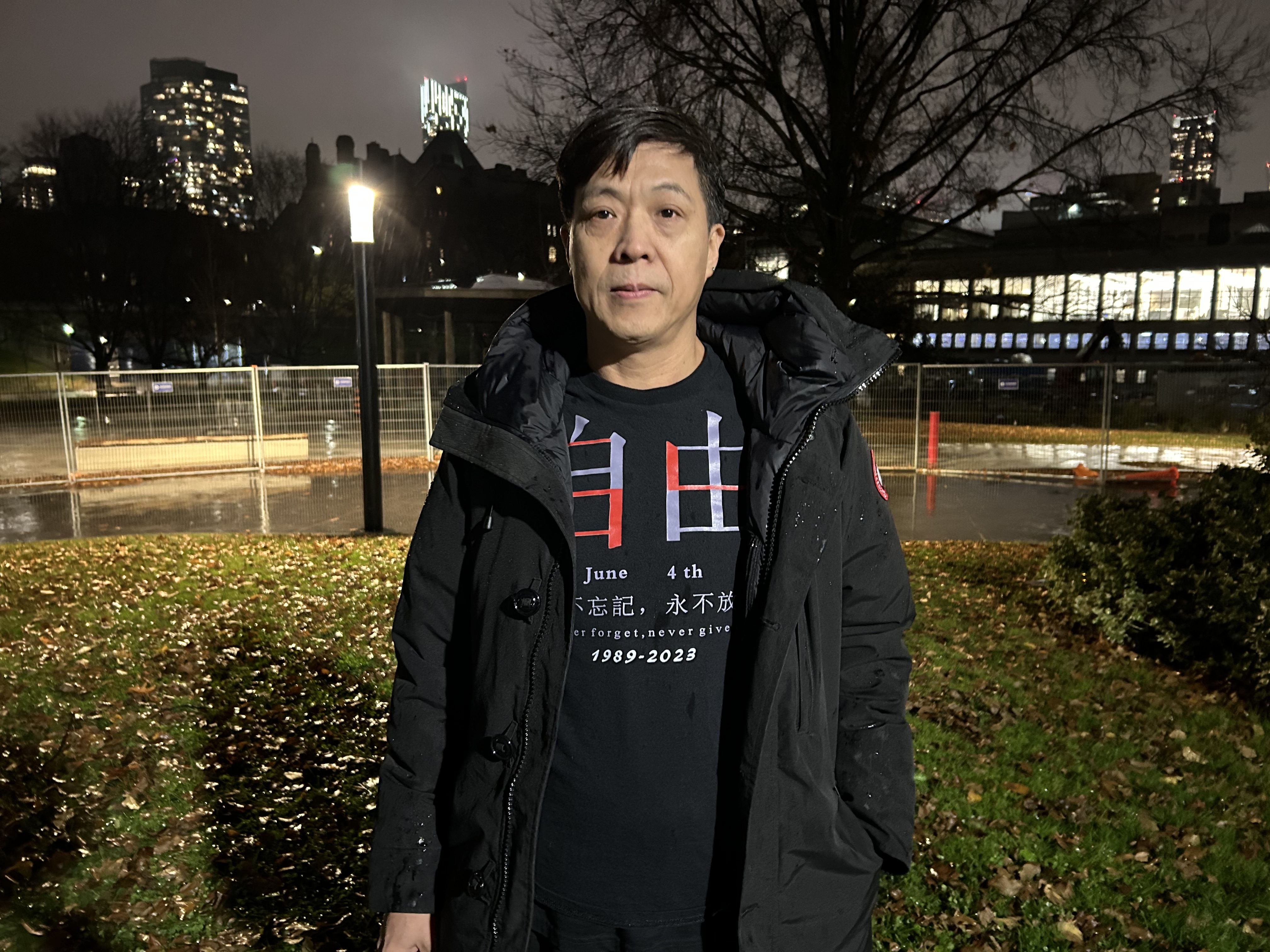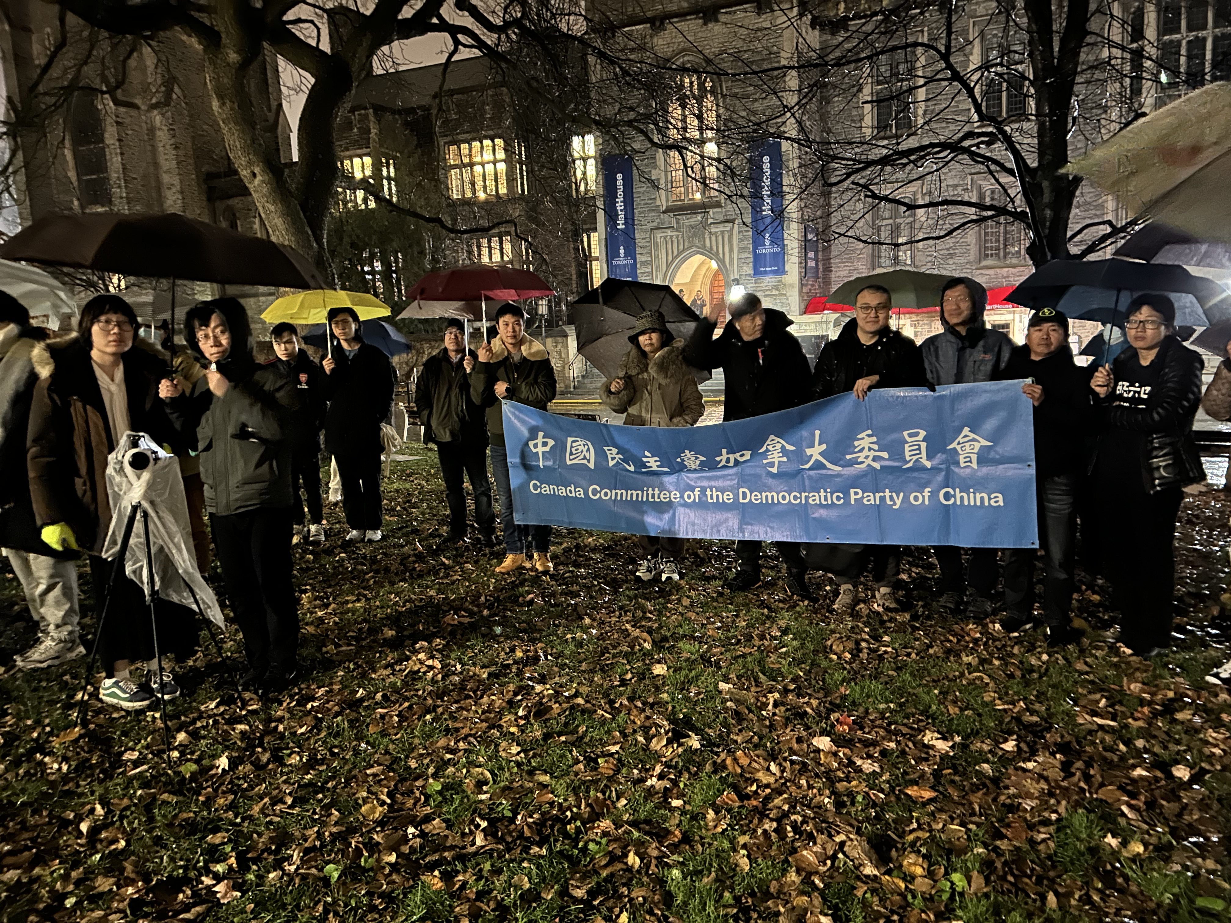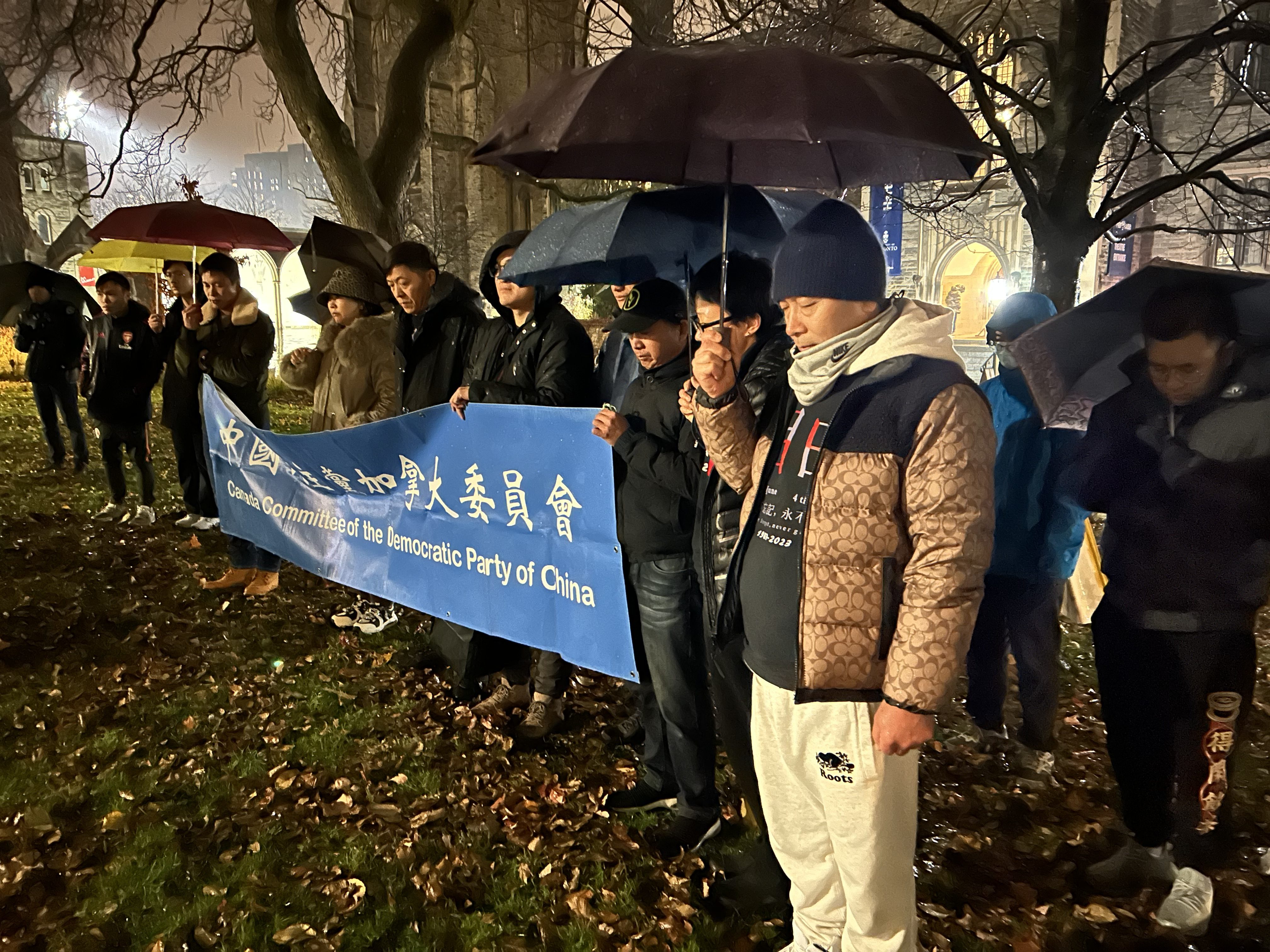 当天晚上风雨交加,但仍然有部分留学生及市民来到多伦多大学活动现场,他们为死难者默哀一分钟,随后用诗歌、视频、音乐、演讲等形式,追忆一年前发生在中国各大城市的白纸运动,纪念那些沉重的时刻及勇于抗争的人们。过程中,现场人士不时高喊,“不做奴隶,做公民”“共产党下台”“习近平下台”,气氛庄严肃穆。