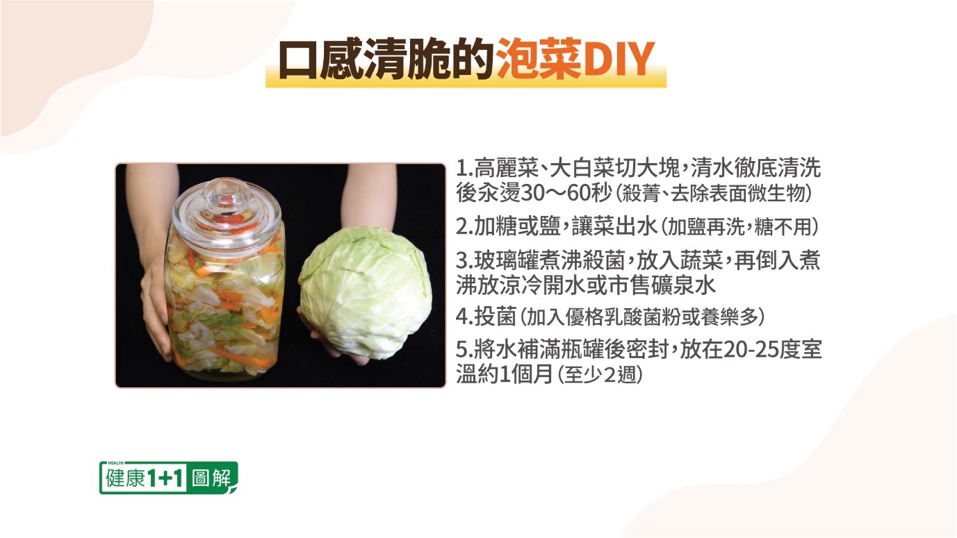 众所周知,吃好菌可以改善肠道健康,发酵食物就是好菌的来源之一。不过,发酵与发霉仅一线之隔,在家自制发酵食品,可以让家人吃得新鲜营养更放心。微生物学专家王绍鸿教授在《健康1+1》节目中分享发酵食物的好处,以及自制发酵泡菜妙招。