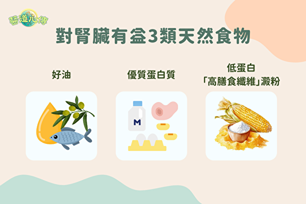1. 好油:好的油脂可以修复肾丝球,例如:鱼油、橄榄油、苦茶油。补充鱼油应该尽量吃小鱼,例如沙丁鱼等,大鱼可能含有较多重金属,不利肾脏健康。