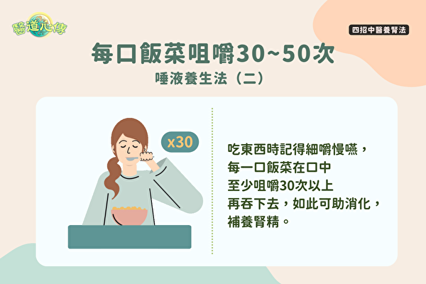 2. 唾液养生法(二)每口饭菜咀嚼30~50次: