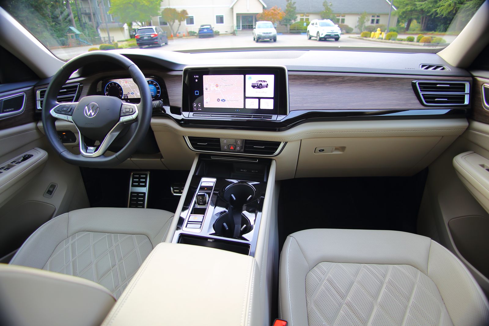 Atlas的另一个特点,是它拥有全虚拟仪表板,即仪表板是一个彩屏,尺寸是10.25吋,再以电脑控制输出影像,由于技术已经成熟,画面中的车速及引擎转速,基本上没有什么迟缓。最特别是它可以在仪表板上显示地图,在使用卫星导航时,便不用分心转头看中控台了,当然,如果嫌仪表板地图太小的话,也可将地图“转移”回中控台萤幕,地图是可以随时“转移”的。测试车也装有Head-Up Display抬头显示器,可显着重要资讯,例如车速,驾驶时不用分心看仪表板。