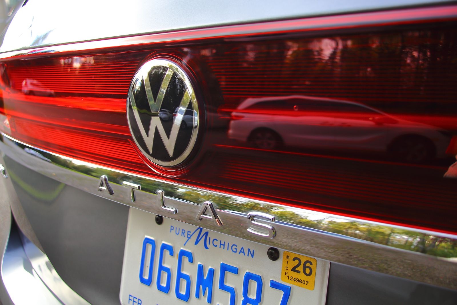 现在的Volkswagen Atlas是拥有三排座椅,所以车长逾5米(近200吋),体型巨大,设计来自2013年展出的概念车Volkswagen CrossBlue,Atlas的方正外形,极具力量感。2024年Atlas刚经过中期升级,前脸及尾闸设计更新颖,进风口栏栅加大了少许,并以黑色代替了镀铬处理,巨大Volkswagen厂徽在头灯亮起时也会有灯光。Atlas的头灯组变得更为巨大,有“C”的日间行车灯围着。尾闸两边后灯以红色反光塑胶板“连”起来,看起来更时尚。