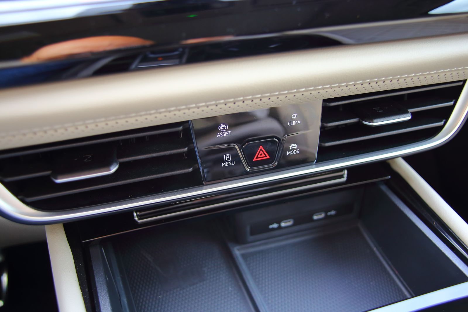 中控台上半部分装有一个12吋萤幕,比旧有的8吋增大了50%,运行MIB3资讯系统,可用作导航、音响、汽车设定等,倒车时也可显示后方影像。萤幕下方只有少量按键,都是用作恒温系统的。由中控告伸延下去,就是引擎启动键及小型变速杆。由于变速杆改为定位底,前推是R档,往后拉是D档,推或拉都会弹回中间,P档键在变速杆前边,与引擎启动键太接近,有好几次也按错了。
