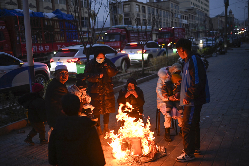 中国甘肃省临夏州积石山县12月18日深夜发生规模达6.2的强震,已造成甘肃及青海两地至少近900人死伤。图为2023年12月19日,积石山县的大河家镇,当地低温,灾民逃难后围在火炉旁取暖。(CNS/AFP via Getty Images)中国甘肃省临夏州积石山县12月18日深夜发生规模达6.2的强震,已造成甘肃及青海两地至少近900人死伤。图为2023年12月19日,积石山县的大河家镇,当地低温,灾民逃难后围在火炉旁取暖。(Pedro Pardo/AFP via Getty Images)中国甘肃省临夏州积石山县12月18日深夜发生规模达6.2的强震,已造成甘肃及青海两地至少近900人死伤。图为12月19日,积石山县的大河家镇,当地低温,灾民逃难后围在火炉旁取暖。 (Pedro Pardo/AFP via Getty Images)