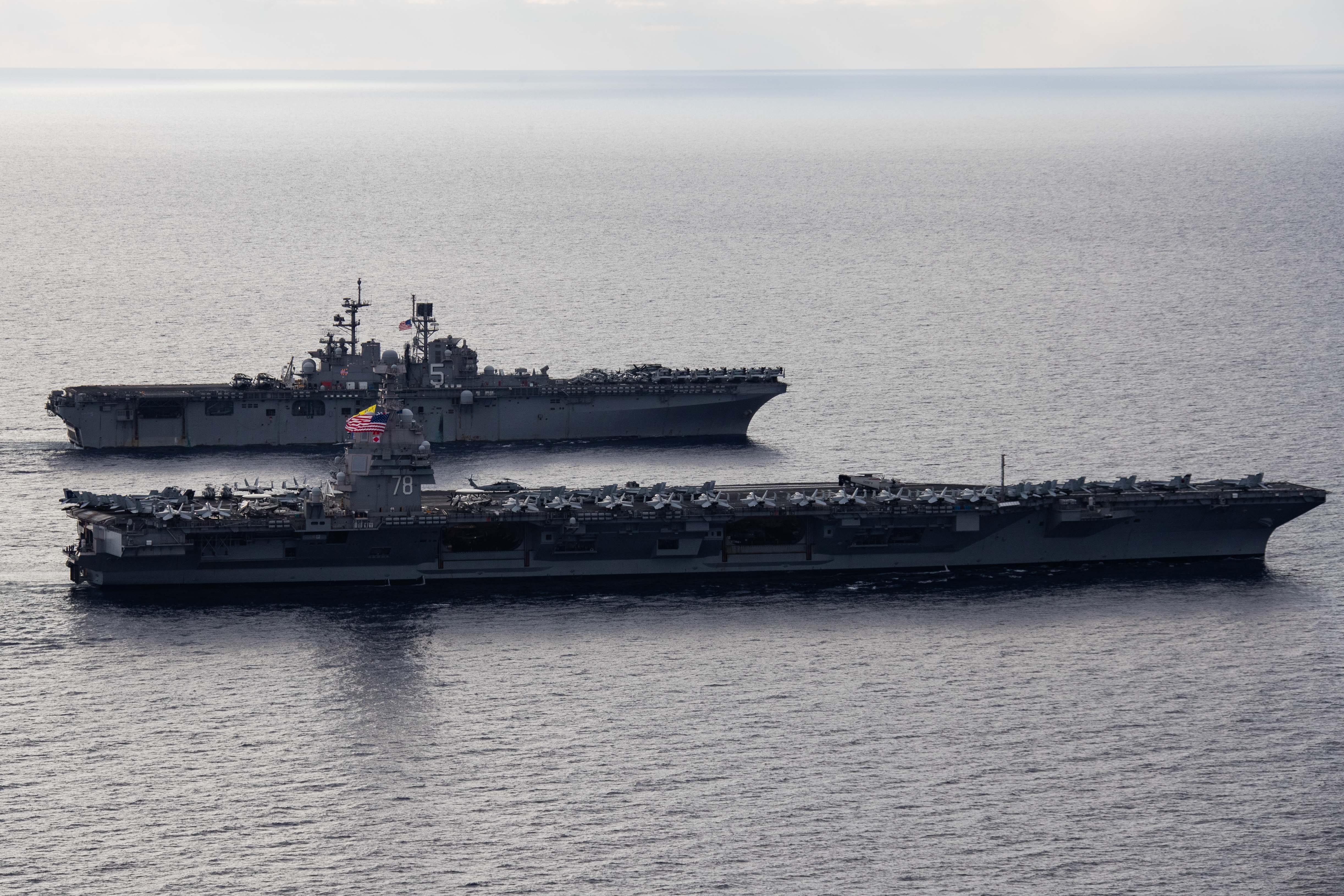 据海军称,目前,福特号正在与苏利文号驱逐舰(USS The Sullivans,DDG-68)、布尔克利号驱逐舰(USS Bulkeley,DDG-84)和德尔伯特‧D‧布莱克号驱逐舰(USS Delbert D. Black,DDG-119)一起航行。