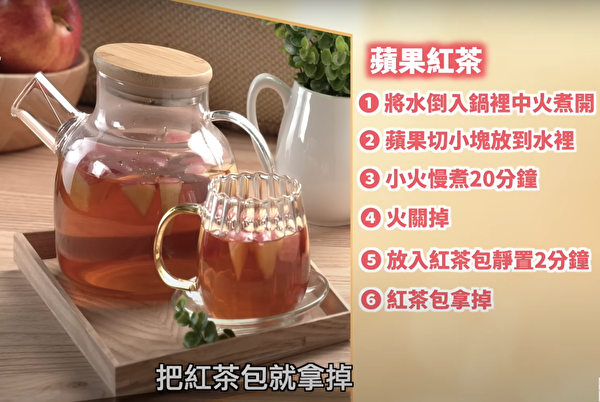 材料:大苹果1个、红茶包2袋、水1000毫升。