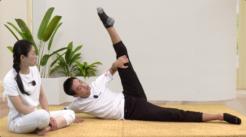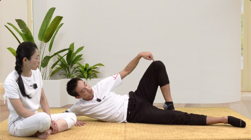 侧抬腿是网路上瘦大腿内侧流行的方法之一,Rocky表示,如果躺的姿势不对,练习到的其实不是大腿内侧,而是股四头肌,关键的重点在于下肢与上肢保持一直线后,上身微向前趴以保持稳定。