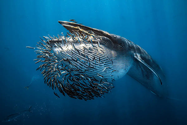 在本届比赛中,瑞典摄影师亚历克斯‧道森(Alex Dawson)拍摄的照片《鲸鱼骨骸》(Whale Bones),从逾6,500件优秀的参赛作品中脱颖而出,使他获得了该赛事的最高荣誉“2024年度水下摄影师奖”,同时他还拿下了广角组的首奖。