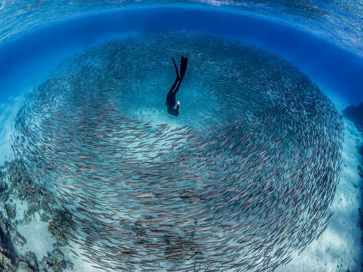 “2024年度新锐水下摄影师奖”由首度参赛的美国摄影师丽莎‧斯坦格尔(Lisa Stengel)拿下。为了拍摄这幅惊人的作品《机会之窗》(Window of Opportunity),丽莎长时间在墨西哥海域寻找鲯鳅(mahi-mahi,俗称鬼头刀),并藉由鱼群发出的声音,追踪鲯鳅的动向。通过耐心观察加上恰当的时机,她成功捕捉到了鲯鳅发动攻击的一瞬间。