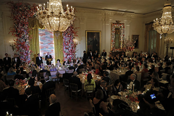 克林顿夫妻参加了晚宴,这位前总统回到熟悉的场地,并说回来“感觉很棒”。许多宾客们身穿着带着明亮的春天色彩的闪亮礼服,一边漫步一边谈论政商议题鱼贯而入。
