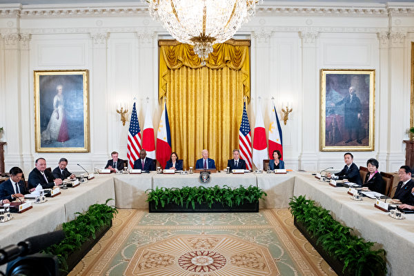 周四(4月11日),美国、日本和菲律宾领导人齐聚白宫,重申美对日、菲的防务承诺,回应北京在有争议的南海问题上对周边国家的挑衅,并强调台海稳定。