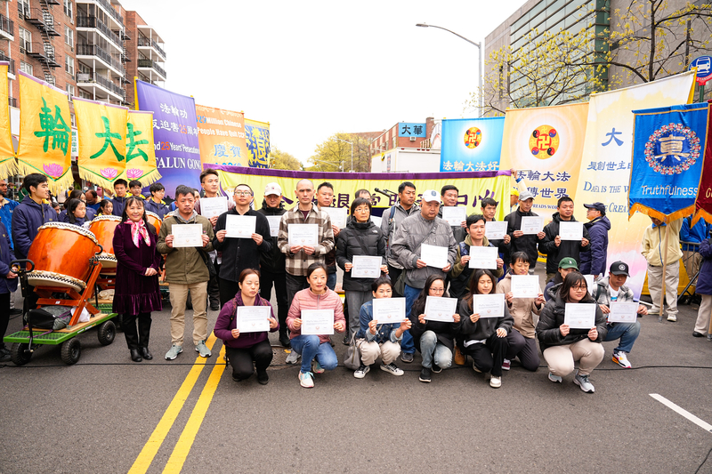 【大纪元2024年04月22日讯】(大纪元记者施萍纽约报导)2024年4月21日,大纽约地区部分法轮功学员和各界人士在纽约法拉盛举行盛大游行和集会,纪念1999年法轮功学员“四二五”和平上访25周年。
