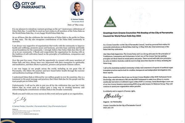 悉尼另一华人重镇Parramatta市前市长、现任市议员萨米尔·潘迪(Sameer Pandey)在贺信中写道,“我一直非常支持与社区合作改善健康和福祉、促进和平与和睦……我坚信法轮大法为我们社区的所有人做到了这一点。”