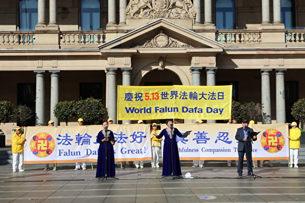 【大纪元2024年05月06日讯】(大纪元记者文清扬澳洲悉尼报导) 5月6日上午,悉尼部分法轮功学员在毗邻世界著名悉尼歌剧院的海关大楼广场上庆祝25届“世界法轮大法日”暨法轮大法洪传32周年,并恭祝法轮功创始人李洪志大师73岁华诞。来自悉尼多个市政府的市议员或到场或致信恭贺。