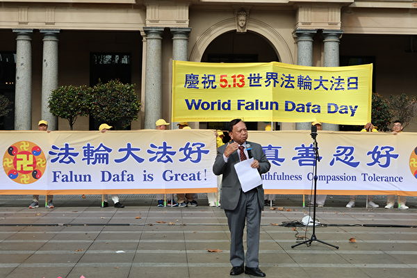 当天,法轮大法澳洲佛学会发言人约翰‧戴乐(John Deller)在集会上还宣读了联邦议员的贺信。