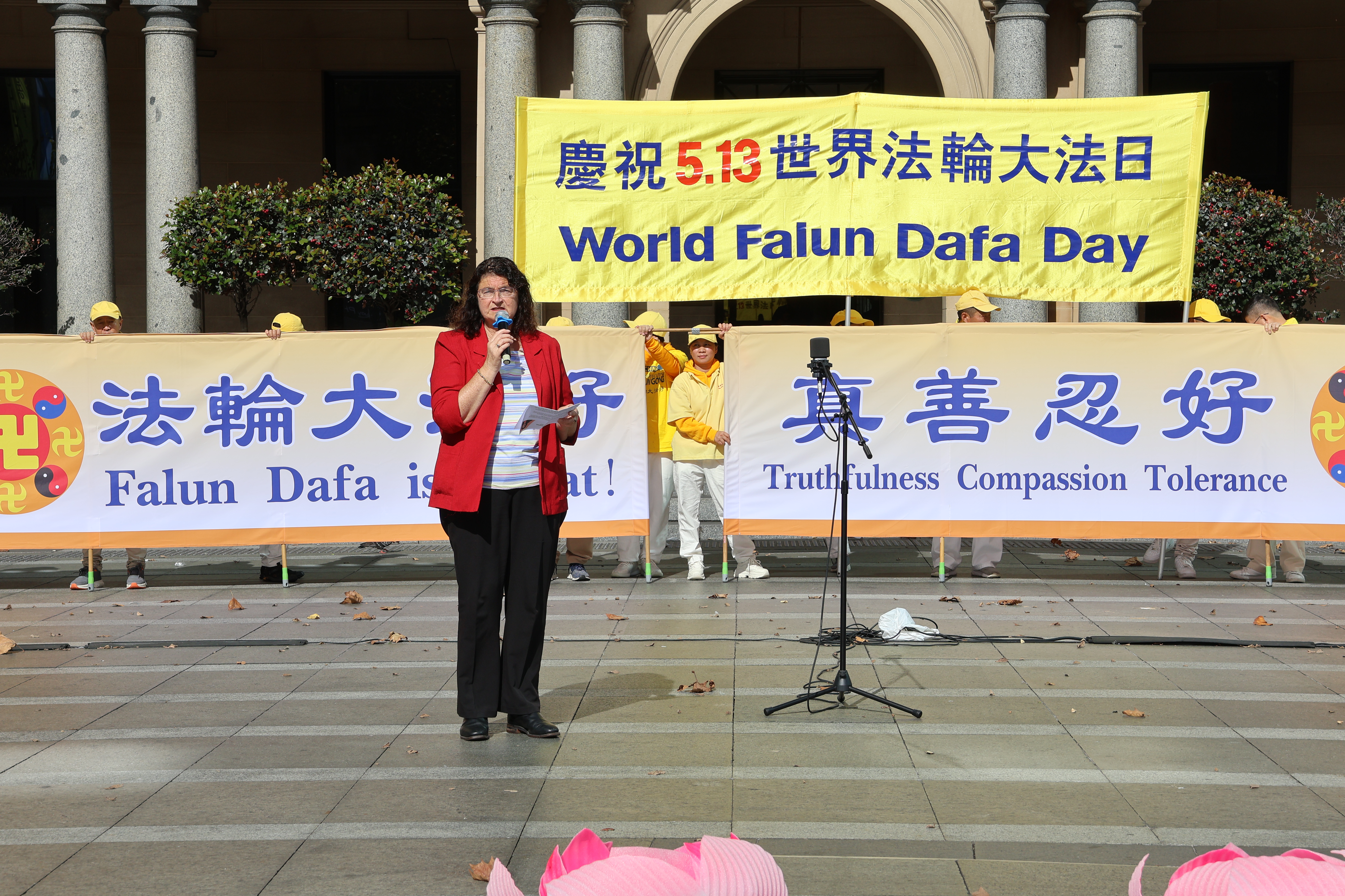 Cumberland市另一位市议员海伦‧休斯(Helen Hughes)则发言表示,“真、善、忍的原则促进了一个人在身体、心理、情感和精神方面的自我完善……在当今时代,这些方面很重要。”