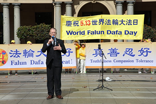 他最后表示,能向法轮大法团体致以敬意感到非常荣幸。